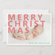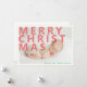 Celebre seu primeiro Natal com um toque na moda e moderno. Este cartão com fotos de feriado minimalista apresenta um feliz Feliz Natal em letras transparentes de sans-serif vermelhas colocadas sobre sua foto favorita de recém-nascido ou de família. Uma saudação de família personalizada em elegante texto verde transparente ancora a parte inferior, fazer este cartão único e sincero. Projetada para imagens leves, a camada transparente permite que os rostos dos seus entes queridos brilhem enquanto mantém uma estética limpa e contemporânea. Perfeito para novos pais ou famílias que querem partilhar alegria de férias com uma reviravolta moderna.
