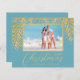 Papel pequeno de 4,5" x 5,6" Os cartões de Natal apresentam frentes de palma de falso brilho dourado em azul turquesa, a sua foto favorita e os nomes nestas cartões com fotos de férias. Estes cartões com fotos de feriado de barato são impressos em papel de 110 lb disponível em 3 tamanhos. **ENVELOPES BRANCOS SÃO OPCIONAIS NA PÁGINA ENCOMENDA. Certifique-se de verificar seu pedido duas vezes antes de adicioná-lo ao seu carrinho, pois o que você vê na tela é o que será impresso. O Serviço de Design ao Vivo pode ajudá-lo com seu layout de design, se necessário, ou alterar a cor de fundo.