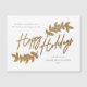 Um roteiro moderno faz feliz feriado em galhos de folha de ouro cartão de feriado comercial com simples tipografia. Clique no botão editar para personalizar este design.