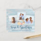 Envie desejos de Natal calorosos da praia com este cartão de feriado costeiro personalizado com 3 fotos e "Seas & Saudações" em tipografia de script manuscrito. No centro está um grupo de conchas de aquarela, com fundo de madeira de praia. Estes cartões são feitos a partir de um papel mais delicado, mais pequeno e mais leve, economizando dinheiro e árvores. *Se precisar de assistência com este design ou produtos correspondentes, entre em contato comigo através do Zazzle.