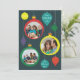 Este Cartões de foto de Natal colorido apresenta três das suas fotos favoritas e as rodeia com o charme de ornamentos de árvores ilustrados, no estilo do médio, fazer que este é um cartão de feriado que você não encontrará em nenhum outro lugar. O padrão de backer pode ser removido para oferecer mais flexibilidade de design e permitir que você adicione seu próprio texto ou mais fotos usando a função personalizar. Fotografia � Shanna Russell Fotografia, San Antonio TX