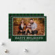 Esta maravilhosa fotografia de Natal tem sua foto favorita, xadrez de búfalos verde e preto, seu nome de família, o ano, e as palavras "Feliz Férias" na frente em branco e uma xadrez de búfalos verde correspondente na parte de trás. A fonte é nítida e limpa, fazer que a placa parece moderna, mas tradicional.