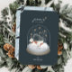 Esta "paz na Terra" galopante, o natal e o cartão de cartões de natal apresentam um globo de neve com ursos polares sob o céu noturno estrelado com neve. Há uma mãe urso polar que está carregando uma árvore nas costas dela, e um filhote de urso polar está carregando um ornamento num fundo azul escuro / marinho azul com estrelas douradas falsas e neve. O verso apresenta um fundo azul de ardósia claro com padrões de ursos polares, bagas e folhas. Personalize-o para as suas necessidades. Você pode encontrar produtos correspondentes na minha loja.