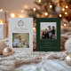 Feliz Natal, quadro botânico Vintage, cartão com fotos de férias. Características, tipografia verde festiva com 2 espaços para modelos fotográficos.