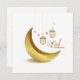 Um cartão simples e bonito, com um crescente lua de ouro, estrelas e lanternas para celebrar Eid com seus entes queridos, cartões de saudação Eid Mubarak moderno Elegante, você pode personalizar cartões Eid Mubarak com desejos de Eid Mubarak.