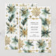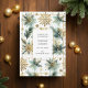 Envie desejos calorosos e elegantes com este cartão de feriado verde e dourado de luxo. Apresentando flocos de neve de ouro bonito, detalhes florais de aquarela, sotaques de pínus, formas geométricas modernas e tipografia de na moda, este design de inverno de abstrato traz um toque sofisticado às suas saudações sazonais.