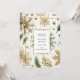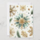 Envie desejos calorosos e elegantes com este cartão de feriado verde e dourado de luxo. Apresentando flocos de neve de ouro bonito, detalhes florais de aquarela, sotaques de pínus, formas geométricas modernas e tipografia de na moda, este design de inverno de abstrato traz um toque sofisticado às suas saudações sazonais.