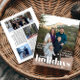 Cartão de Férias estilo cobrir de revista com amplo espaço para fotos e realces familiares.