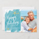 A design da carta de feriados felizes da praia minimalista da Boutique Co. náutica apresenta a moderna tipografia manuscrita, a sua foto-retrato favorita (proporção 5x7) e os sotaques a cores-d'água para um tema de feriado tropical divertido. O design é definido em um fundo de amostra de aqua teal d'água. #FelizNatal #CartõesFeriados #Feriados Tropicais