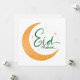 Uma carta simples e fofa, com um crescente lua de ouro com Eid Mubarak, na moderna fonte verde, para celebrar Eid com os seus entes queridos, cartões de saudação Elegante Moderno Eid Mubarak .