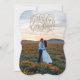 Lindas saudações de férias para recém-casados. Caligrafia manual simples sobre uma foto de página inteira e um suporte decorado com floreios.