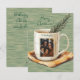 Sua foto de família se destacará em uma caneca confortável neste cartão de feriado rústico e casual. Seu nome familiar aparecerá acima da foto na caneca. As palavras "Feliz Natal!" aparecem acima da caneca na tipografia casual. O fundo verde de madeira aumenta o conforto e o sentimento de casa. Na parte de trás do cartão, há uma mensagem de Natal personalizável.
