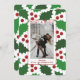 Envie as cartões de natal do seu amado com este cartão com fotos vertical de férias enfeitado com folhas verdes e bagas vermelhas. Um quadro vermelho fino destaca sua foto especial! Basta adicionar o nome da foto e da família! As folhas sagradas baseiam-se numa design desenhada à mão.