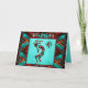 Personalize este Cartão de Saudação de "Um Tipo" do Sudoeste de Kokopelli! Ele apresenta um Kokopelli Sudoeste tocando flauta e dançando sob o sol em um fundo turquesa, cercado por turquesa, bordas laranja e negra e as palavras uplifantes... "Paz na Terra"! Design De Arte Original Pelo Artista Kerry Miller.