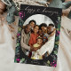Este cartão de feriado moderno apresenta sua foto favorita com elegantes botânicos de inverno em rosa e um roteiro cardíaco de caligrafia. Para fazer alterações avançadas, selecione Personalizar -> Editar usando a ferramenta Design. A cor da frente da placa pode ser modificada alterando a cor do elemento Oval.