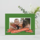 Uma fita vermelha desenhada à mão com um script personalizável do texto Feliz Natal. O vermelho e o verde criaram um esquema clássico de cor de feriado. Adicione sua foto favorita na frente e mais duas na parte traseira com uma mensagem personalizada de fim de ano.