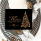 O moderno cartão de férias preto é o cartões de natal simples perfeito. O clássico design moderno apresenta espirais de rico e turbilhões brancos com ouro maravilhoso. Personalize a frente do cartão seu nome de família e o ano.
