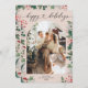 Este cartão de férias moderno apresenta sua foto favorita de férias em forma de arco decorado com botânicos de inverno elegantes. Para fazer alterações antecipadas, selecione Personalizar -> Editar usando a ferramenta de design.