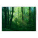 Raios do sol matinal a correr para uma brilhante floresta de Verão verde, com árvores maciças cobertas de mariposa e um espesso cobertor de mato. Uma fotografia manipulada digitalmente para dar às videiras sobrecultivadas, névoa azul-esverdeada, raios-deus ouro e árvore primavera-verde deixam uma qualidade de sonho.