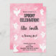Adicione um brinde à estação assustadora com este convite de aniversário de Halloween rosa! Apresentando fantasmas bonitos, morcegos e sotaques cor-de-rosa macio, é perfeito para meninas que amam o Halloween com um pouco de brilho. Totalmente editável — personalize com o nome, a idade e os detalhes da festa do seu filho.