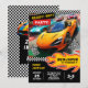 Design perfeito para uma festa de aniversário de alta energia, um carro de corrida. Cores brilhantes, carros rápidos e sinalizadores marcados definem a cena de uma festa inesquecível.