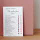 jogo de cartas preto e branco para um Chá de Casamento ou Casais, personalizado com os nomes da noiva e do noivo.Todas as perguntas no jogo divertido de chá de panela, jogo de solteiro e calçado de casamento são modificáveis.