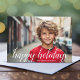 Cartão De Festividades 1 Foto de Natal Script White Damask Happy