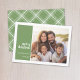 Padrão de Xadrez verde-safra no verso - Um Cartões de natal simples e minimalista com 1 foto quadrada e caligrafia moderna. Coloque suas fotos em quadrados antes de carregar.
