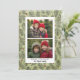 Use 2 fotos horizontais e faça um Cartões de natal único e dinâmico com um padrão de galho de árvore de Natal caprichoso no fundo. Tem um aspecto pintado com ícones de inverno. Se precisar mover alguma coisa, clique no botão personalizar para fazer alterações.