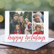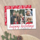 Cartão De Festividades 3 Foto Natal Script Red Damask Happy