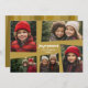 Uma imagem de colagem de fotos pós-moderna e divertida com uma vibração retrorreflectora. Mostrado em tons de ouro, este cartão de feriado mostrará 5 das suas fotos favoritas. Use cinco fotos para fazer uma recordação de Natal feliz e única. Se precisar mover alguma coisa, clique no botão personalizar para fazer alterações.