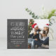 O design de cartão com fotos de Férias apresenta um estilo rústico vintage com a mistura de tipografia "É a época mais maravilhosa do ano", um sotaque de verde natalino e um fundo de quadro negro com aparência texturizada.
