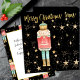 Um cartão de Natal Nutcracker que apresenta um quebra-cabeça pintado a aquarela com estrelas de ouro cintilantes contra o céu noturno.