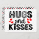 Cartão de Feriado de Hugs e Kisses A imagem mostra um gnomo estilizado com balão e corações em forma de coração. O tom geral é caprichoso e divertido.