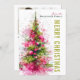Merry Christmas - Abstract modern pink and green Christmas Tree Photo Personalized flat card. This stunning holiday card is sure to delight. A modern watercolor splash art holiday tree with a text template for you to add your names and template for a message to the back along with your photograph - Personalized Holiday cards from Ricaso which let you send your seasons greetings in style