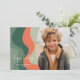 Uma arte de abstrato orgânica com cores verdes e corais. O design moderno destaca sua foto favorita para a época de Natal. A frente também inclui uma fonte de caligrafia para a saudação e um simples padrão de arte de abstrato no verso. Se precisar mover alguma coisa, clique no botão personalizar para fazer alterações.