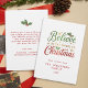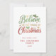 Compartilhe a alegria da temporada com este "Acredite no Mágico do Simple Holiday Card de Script de Natal". A design da frente apresenta tipografia festiva em verde, ouro e vermelho cercado por groselhas ocas, flocos de neve dourados, estrelas reluzentes e pontos vermelhos e verdes alegres para um toque mágico de feriado. Personalize com seu texto personalizado, nome da família e ano de Natal em uma tipografia vermelha em negrito sobre um fundo branco nítido. Nas costas, adicione seus próprios desejos familiares e nomes de cada membro da família para criar um sentimento sincero e único. Uma maneira moderna, mínima e na moda para espalhar o aplauso de férias.