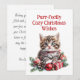 Espalhe a alegria de férias com este cartão de Natal adorável, com um gatinho super fofo enfiado entre decorações festivas como a Holly, a ivy, os pinecones e baubles brilhantes. A frente da carta o cumprimenta com a mensagem animadora, "Desejos de Natal Puro-Puro-Enjoo", enquanto o reverso transmite um sentimento ponderado de calor e alegria para a temporada. Seja para a família, amigos ou colegas de trabalho, este cartão tem certeza de trazer um sorriso com seu design confortável, festivo e doce gatinho. Perfeito para quem ama gatos e a magia do Natal. Todo o texto neste cartão é personalizável.