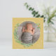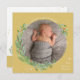 O tema das festas de Natal, o projeto do cartão de foto de férias com folhagem verde pintada à mão em uma grinalda de círculo dourado sobre um fundo dourado. Sua imagem é enquadrada de forma simples e o design é acentuado com manchas de aquarela e folhas de azevinho correspondentes. #Natal #Feriados #CartõesDeNatal