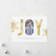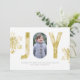 O J e o Y na palavra ALEGRIA são uma aguarela do ouro do falso e o O indica sua foto. A parte traseira do cartão é um teste padrão do polkadot do ouro. Elementos usados neste ©StudioDenmark do design + ©DelightClipart. Estúdios de Storytree do © da fotografia, Stanford, CA