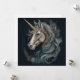 Ilustração gerada por IA de um retrato de unicórnio colorido em tons escuros e mutado.