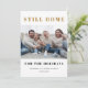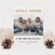 Cartão de feriado moderno e limpo para 2021 com texto falso em bloco de brilho dourado que diz "ainda lar para os feriados" com a foto da sua família.