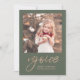 Uma alegria simples e festiva e um cartão religioso de Natal feliz apresenta uma foto e um roteiro de alegria bonito em um fundo verde, com uma única volta rústica voltada para trás.