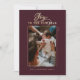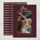 Deseje a sua família e amigos uma feliz ano novo com a nossa elegante caligrafia de ouro falso e cartão com fotos da família de solteiros de Feliz ano novo burgundy. Design apresenta um espaço reservado para fotos para exibir sua foto especial da família. "Joy to the New Year" é exibido em um elegante script de caligrafia em ouro e paring de texto. Personalizar com assinatura de ano e família. O verso apresenta um simples design de fita de ouro elegante e elegante.