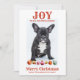 Um cão personalizado, um cachorro francês, alegria de Natal para os quatro cartões de férias. Substitua a foto por sua foto de cachorro ou gato. Não se esqueça de pegar seu personagem de animais de estimação e salvar o cartão para a posteridade.