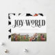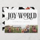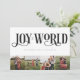 Este cartão de Natal tem manchas para 4 das suas fotos na parte inferior. A mensagem religiosa diz Joy to the World em bela e simples tipografia com florescimento. Há muito espaço branco que dá uma sensação aberta, moderna, mínima, e arejada.