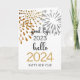Adeus 2024 Olá 2025 | Cartão de Férias Festivas Dourado Glitter Festivo Fireworks Feliz ano novo. Mande cumprimentos e desejos calorosos para seus entes queridos com este belo cartão de Ano Novo. Todos os textos estão pré-organizados para que você personalize fácil e rapidamente com seus próprios detalhes. Desejo a todos um Feliz Feriado e um Incrível Ano Novo! Visite nossa loja para muitas outras opções bonitas de cartão. https://www.zazzle.com/collections/2023_new_year_cards-119173159128235768