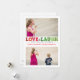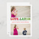 Mostre duas das suas fotos favoritas com este cartão simples da PiPo Press. Projetado com uma fonte de giz manuscrita divertida em diferentes tons de vermelho e verde, ele envia uma mensagem inspirada de "Love & Laugh". Deseje aos seus amigos e família feriados felizes nesta temporada com pensamentos de riso e amor.