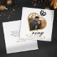 Celebre o seu noivado com este cartão de natal de lançamento na moda e moderno! Apresentando um esquema de cores preto e dourado, um símbolo de anel de diamante chic, e sua bela foto de noivado em um coração ouro, esta carta é a maneira perfeita de compartilhar suas interessantes notícias com a família e os amigos.