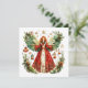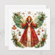Doce Anjo de Natal e lanternas acesas com velas cartão de Natal. Bagas de inverno e estrelas noturnas e flores. Belo cartão de Natal.